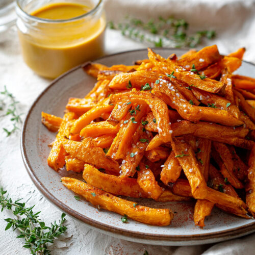 These Slow Baked Sweet Potato fries are proof that healthy eating can be just as comforting and satisfying as indulgent snacks — without the excess oil, deep-frying, or nutrient loss. Baked slowly at just 110 °C (230 °F), they’re crisp on the outside, tender on the inside, and naturally sweet with a smoky, savory kick from the spices. Perfect for pairing with Vegan Honey Mustard or your favorite dip, this recipe is not only delicious but also supports your health and weight release goals.