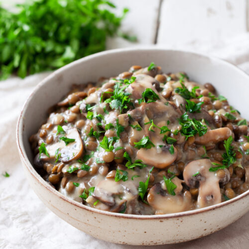 A: You can use cooked chickpeas or even black beans, though lentils give the best texture and flavor for stroganoff.